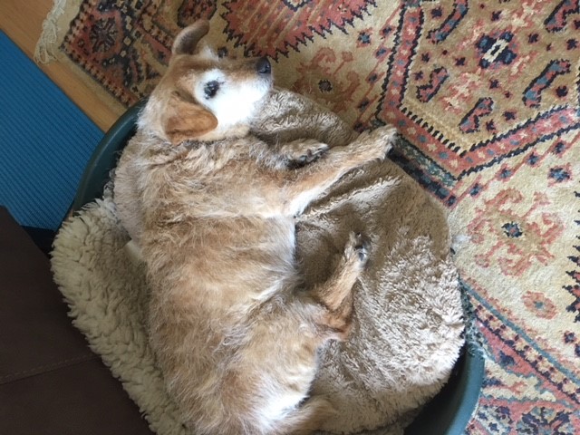 先生のDVDをかけていたら、知人から預かっている18才の高齢犬が、神経質にヨタヨタと歩き回っていたのにリラックスして寝てしまいました。」