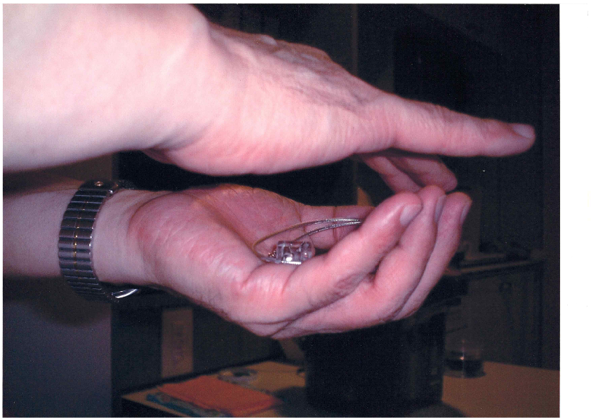 ある日、彼はカメラを持ってきました。そして、「先生、先生の気を写真に撮らしてください」と言って、手のひらのネックレスに気を入れているところを、写真に撮りました。
